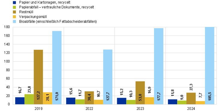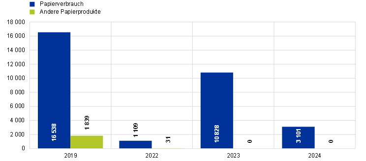 Anmerkung: Weitere Informationen zu diesen Entwicklungen finden sich in Kapitel 6 – Umweltaspekte und -auswirkungen der EZB-Aktivitäten. Einzelheiten zu den Umweltdaten pro Arbeitsplatz im Jahr 2024 sind Kapitel 7 – Technische Informationen zu entnehmen.