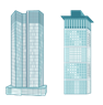 • energieeffiziente dreischichtige Fassade des Büroturms