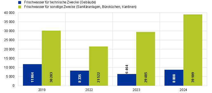 4. 2024 konnte die EZB mit dem am Hauptgebäude gesammelten Regenwasser 1,8 % (548,8 Kubikmeter) ihres Frischwasserverbrauchs decken.