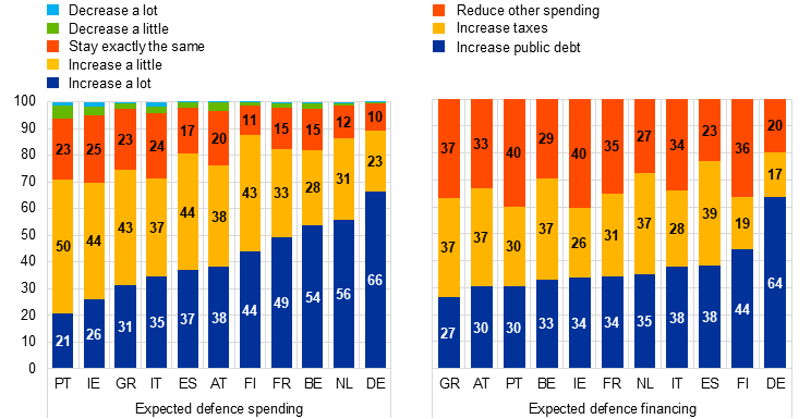 6. These two countries are also among those with the lowest share of respondents expecting a significant increase in defence spending, broadly reflecting their governments’ announcements (noting that Greece has one of the highest defence spending-to-GDP ratios in the euro area).