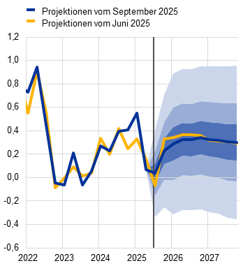 a) Projektionen vom September 2025 | b) Revisionen gegenüber den Projektionen vom Juni 2025 |
