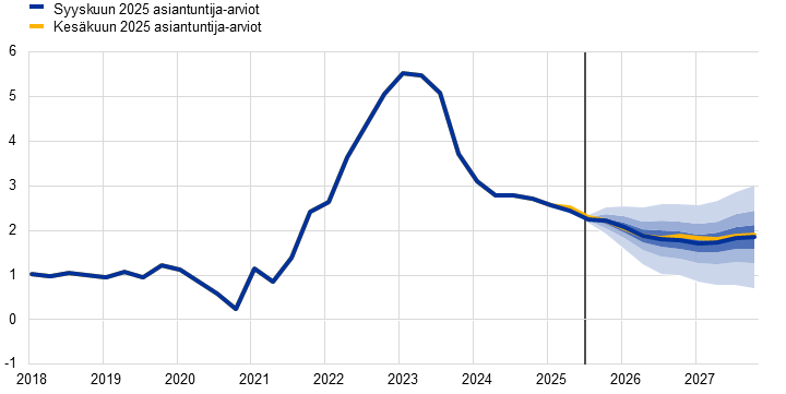 EKP:n asiantuntijoiden arviot | Syyskuu 2025 | 1,2 | 1,0 | 1,3 | 2,1 | 1,7 | 1,9 | 2,4 | 1,9 | 1,8 |
