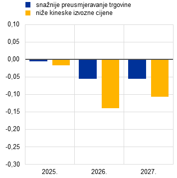 Utjecaj jačeg preusmjeravanja trgovine i nižih kineskih izvoznih cijena na izvoz