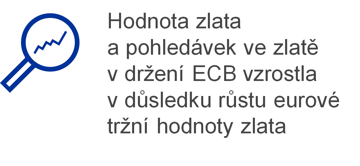 Eurová hodnota zlata a pohledávek ve zlatě v držení ECB se v roce 2021 zvýšila o 1,1 mld. EUR na 26,1 mld. EUR (graf 4) v důsledku nárůstu eurové tržní ceny zlata, zatímco objem těchto držených aktiv v uncích ryzího zlata zůstal beze změny. Toto zvýšení také vedlo k odpovídajícímu nárůstu účtů přecenění ECB – zlato (viz část 1.3.2 „finanční zdroje“).