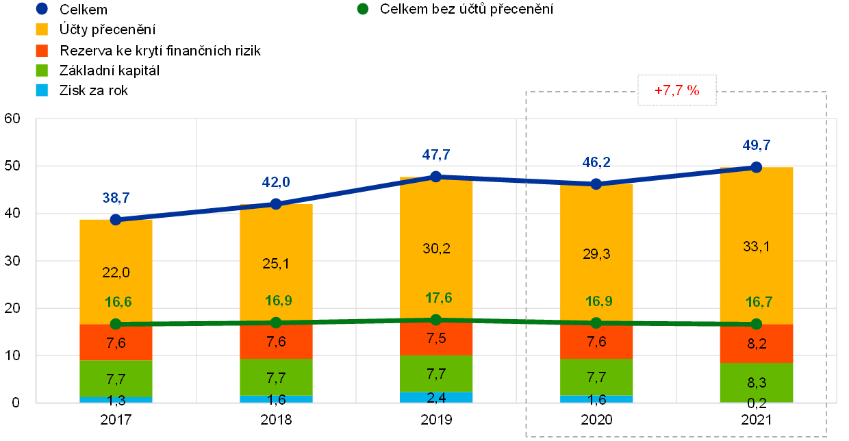 - Navýšení rezervy ke krytí finančních rizik vedlo k odpovídajícímu poklesu zisku v roce 2021.