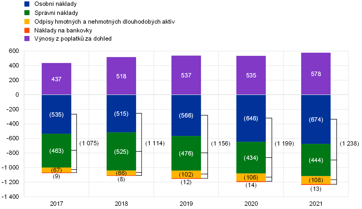 - Výnosy z poplatků za dohled jsou zachyceny pod položkou „ostatní výnosy a náklady“ (graf 13).