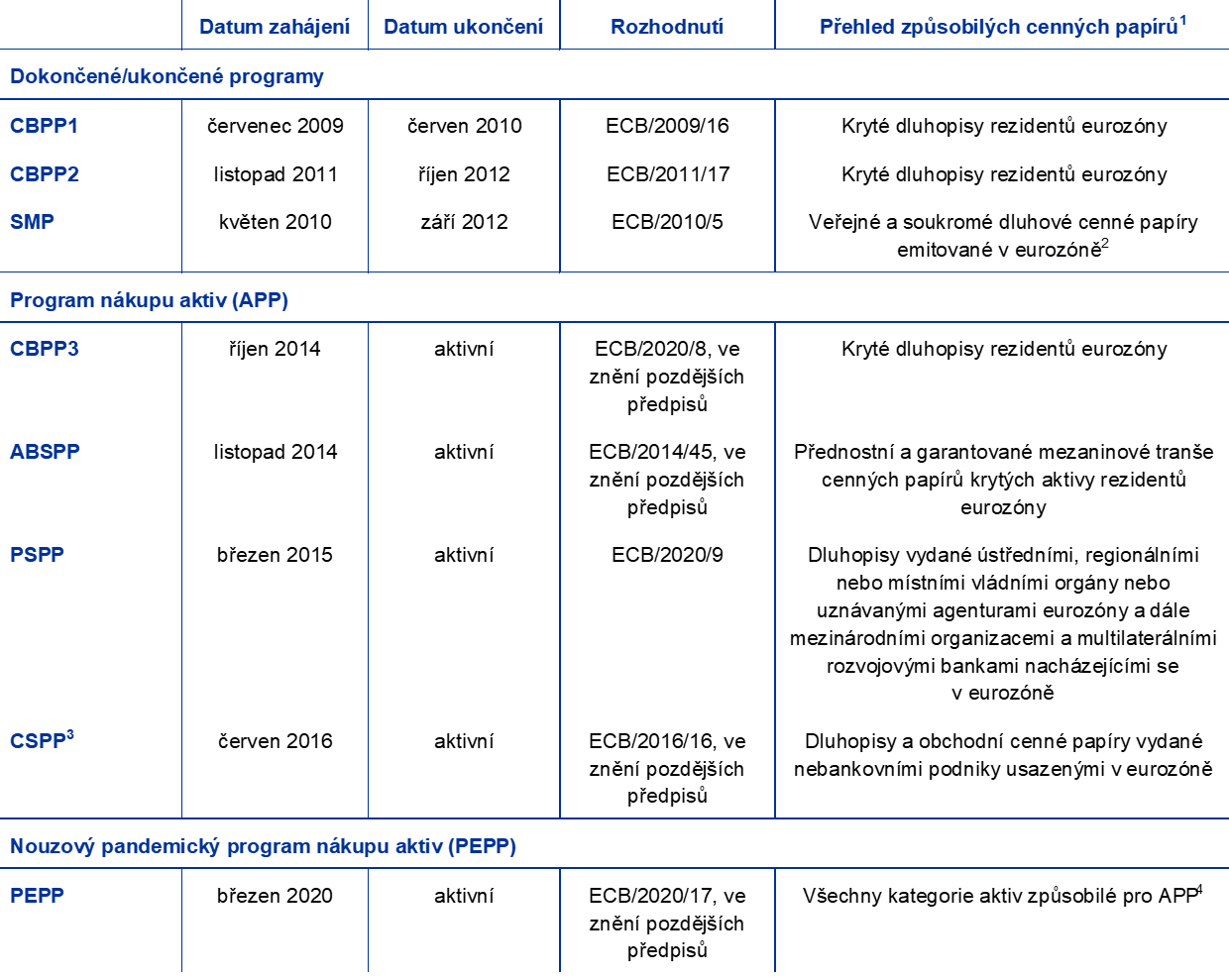 - Více informací o omezení splatnosti pro APP i PEPP je k dispozici na internetových stránkách ECB.