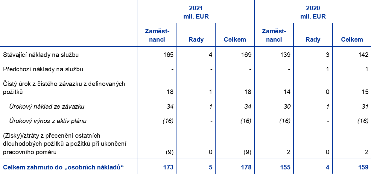 - Čistá částka zaznamenaná ve výkazu zisku a ztráty v souvislosti s důchodovými opatřeními stávajících členů Výkonné rady a stávajících členů Rady dohledu zaměstnaných ECB, viz poznámka č. 13.3 „ostatní“.