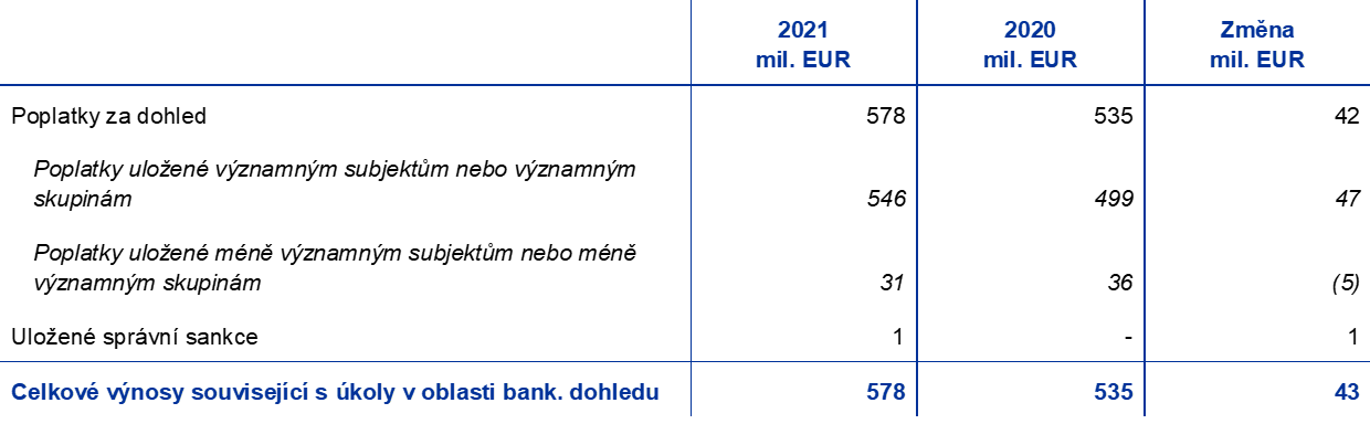 - Rozhodnutí ECB o celkové výši ročních poplatků za dohled za rok 2021 bude přijato a následně zveřejněno do konce dubna 2022.
