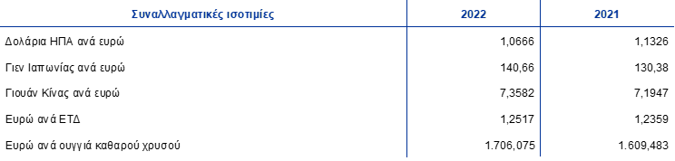 Οι βασικές συναλλαγματικές ισοτιμίες και η τιμή του χρυσού κατά την περίοδο 2018-22