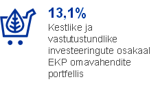 Roheliste investeeringute osakaal EKP omavahendite portfellis kasvas jätkuvalt ning moodustas 2022. aasta lõpus 13,1% (2021. aasta lõpus 7,6%). EKP kavatseb eelolevatel aastatel nende investeeringute osatähtsust veelgi suurendada.[11] Alates 2021. aastast täiendavad järelturgudelt tehtavaid roheliste võlakirjade oste investeeringud eurodes nomineeritud roheliste võlakirjade investeerimisfondi, mis on mõeldud keskpankadele ja mille Rahvusvaheliste Arvelduste Pank käivitas jaanuaris 2021.