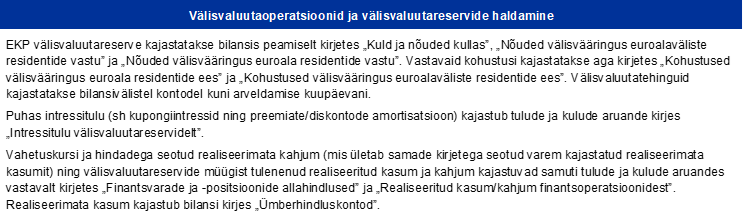 EKP üksikasjalikud arvestuspõhimõtted on sätestatud EKP 3. novembri 2016. aasta otsuses (EL) 2016/2247 EKP raamatupidamise aastaaruannete kohta (EKP/2016/35; koos muudatustega), ELT L 347, 20.12.2016, lk 1. Mitteametlik konsolideeritud tekst koos muudatuste loeteluga on avaldatud siin.
