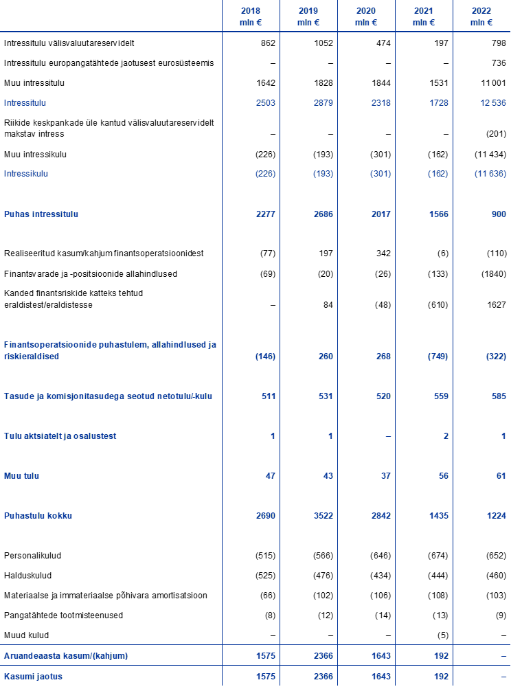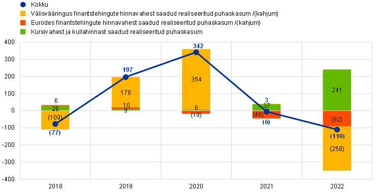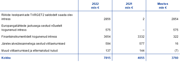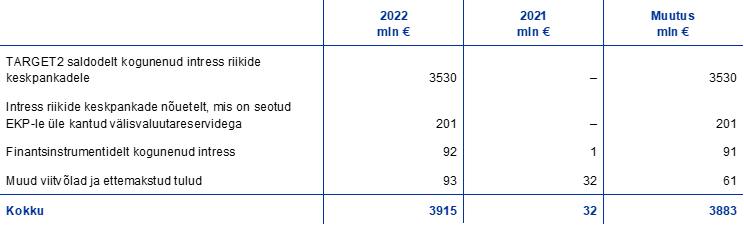 Puhas intressitulu välisvaluutareservidelt kasvas 602 miljoni euro võrra 798 miljoni euroni peamiselt seoses suurema intressituluga USA dollarites nomineeritud väärtpaberitelt. USA dollari portfellilt saadud keskmine intressimäär suurenes 2022. aastal eelmise aastaga võrreldes tingituna i) varem soetatud madalama tulususega võlakirjade müügist ja lunastamisest ning ii) kõrgema tulususega väärtpaberite ostudest seoses USA dollarites nomineeritud võlakirjade tulususe kasvusuundumusega alates 2021. aasta lõpust (vt joonis 17).
