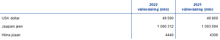 Kulla ja välisvääringute realiseerimata kasumit ning väärtpaberitega (mille suhtes kohaldatakse hinna ümberhindlust) seotud realiseerimata kasumit ei kajastata tulude ja kulude aruandes tuluna ning see kantakse otse ümberhindluskontodele EKP bilansi kohustuste poolel. Neil kontodel olevaid varasid saab kasutada vastavate hindade ja/või vahetuskursside edasise ebasoodsa arengu mõju absorbeerimiseks, parandades seeläbi EKP vastupanuvõimet alusriskidele. 2022. aastal suurenes kulla, valuuta ja väärtpaberite ümberhindluskontode[14] maht 3,0 miljardi euro võrra 36,1 miljardi euroni. Selle põhjuseks olid välisvääringute ja kulla suuremad ümberhindlussaldod tingituna peamiselt euro odavnemisest USA dollari suhtes ning kulla turuhinna tõusust eurodes (vt joonis 12). Osaliselt korvas selle väärtpaberite ümberhindlussaldode vähenemine.