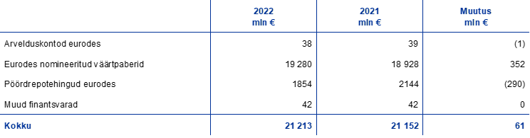Portfell koosneb peamiselt eurodes nomineeritud väärtpaberitest, mille väärtust hinnatakse aasta lõpu turuhindade alusel. 2022. aastal moodustasid 76% sellest portfellist valitsussektori võlaväärtpaberid.