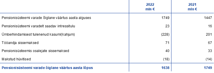 Pensionikava määratud väljamakse sambas kajastuvad ainult EKP ja tema töötajate kohustuslikud sissemaksed. Töötajate vabatahtlikud maksed määratud sissemaksega pensionisambasse ulatusid 2022. aastal 189 miljoni euroni (2021. aastal 220 miljonit eurot). Need maksed investeeritakse pensionikava varadesse ning nendega seoses tekib vastavalt ka sama suur kohustus.