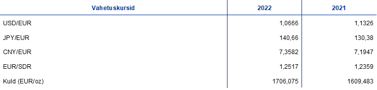 Tähtsamad vahetuskursid ja kullahind aastatel 2018–2022