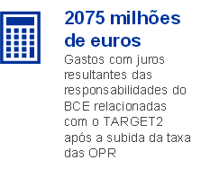 O resultado líquido de juros e de custos e proveitos equiparados do BCE diminuiu 666 milhões de euros, passando para 900 milhões de euros (gráfico 14), sobretudo devido aos gastos com juros resultantes das responsabilidades líquidas do BCE relacionadas com o TARGET2. Os juros e outros custos equiparados decorrentes da remuneração dos créditos dos BCN dos países da área do euro relacionados com os ativos de reserva transferidos para o BCE também contribuíram para esta diminuição. Estes gastos foram parcialmente compensados pelos juros e outros proveitos equiparados mais elevados decorrentes i) dos créditos do BCE relacionados com a repartição das notas de euro no Eurosistema; ii) dos ativos de reserva; e iii) dos títulos detidos para fins de política monetária.