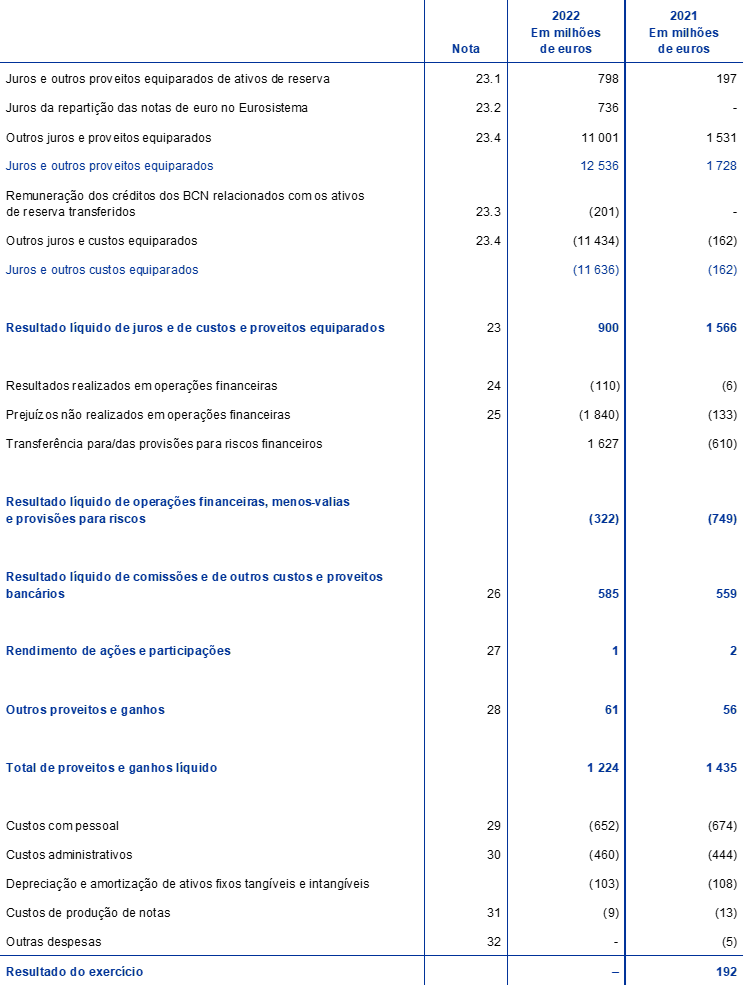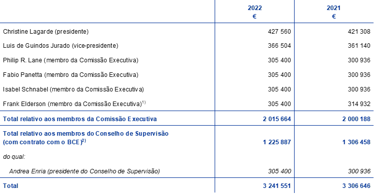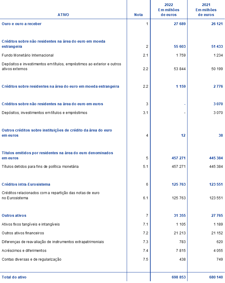 Esta nota não é parte integrante das demonstrações financeiras do BCE para o exercício de 2022.
