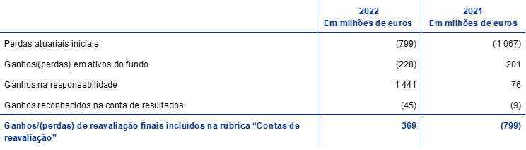 A rubrica do balanço “Contas de reavaliação” inclui igualmente remensurações dos benefícios pós‑emprego.