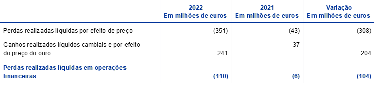 Após a utilização de 1627 milhões de euros da provisão para riscos financeiros, a fim de compensar perdas incorridas em 2022, o resultado financeiro do BCE foi zero (192 milhões de euros, em 2022). As perdas decorreram sobretudo i) dos gastos com juros resultantes das responsabilidades líquidas do BCE relacionadas com o TARGET2; e ii) do resultado líquido negativo de operações financeiras e menos‑valias (gráfico 13).
