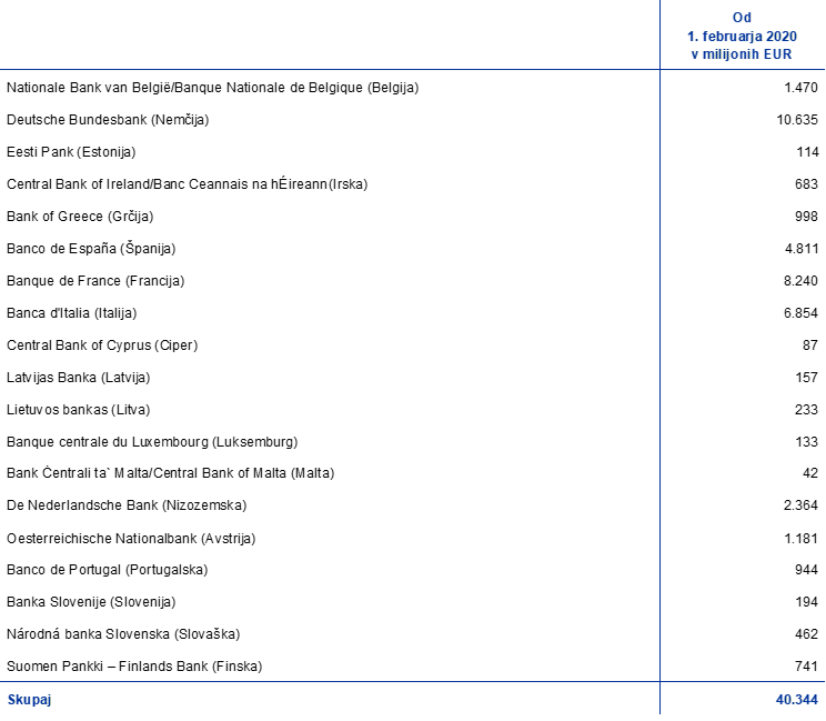 Glej sporočilo za javnost z dne 30. januarja 2020 o vpisanem kapitalu ECB po izstopu Bank of England iz ESCB.