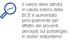 Alla BCE è stata attribuita una quota pari all’8% del valore totale dei biglietti in euro in circolazione. Tale quota trova contropartita nei crediti verso le BCN, che producono interessi al tasso applicato dall’Eurosistema nelle aste delle operazioni di rifinanziamento principali e sono esposti alla voce “Crediti derivanti dall’allocazione delle banconote in euro all’interno dell’Eurosistema” dello stato patrimoniale. Gli interessi confluiscono nella voce “Interessi attivi derivanti dall’allocazione delle banconote in euro all’interno dell’Eurosistema” del conto economico. I costi derivanti dal trasporto transfrontaliero delle banconote in euro fra le officine carte valori e le BCN, per la consegna dei biglietti nuovi, e fra le BCN, per la gestione delle scorte, sono sopportati a livello centrale dalla BCE. Tali costi sono esposti nel conto economico alla voce “Servizi di produzione delle banconote”. | Il portafoglio detenuto a fronte dei fondi propri della BCE è rilevato principalmente alla voce “Altre attività finanziarie” dello stato patrimoniale. Gli interessi cedolari e i premi e gli sconti ammortizzati sono iscritti nel conto economico alle voci “Altri interessi attivi” e “Altri interessi passivi”. Le perdite da prezzo non realizzate, per la parte eccedente gli utili da prezzo precedentemente registrati sugli stessi strumenti, nonché gli utili e le perdite realizzati derivanti dalla vendita di titoli sono anch’essi imputati al conto economico, rispettivamente alle voci “Svalutazioni di attività e di posizioni finanziarie” e “Utili e perdite realizzati rivenienti da operazioni finanziarie”. Gli utili da prezzo non realizzati sono iscritti alla voce “Conti di rivalutazione” dello stato patrimoniale. |
