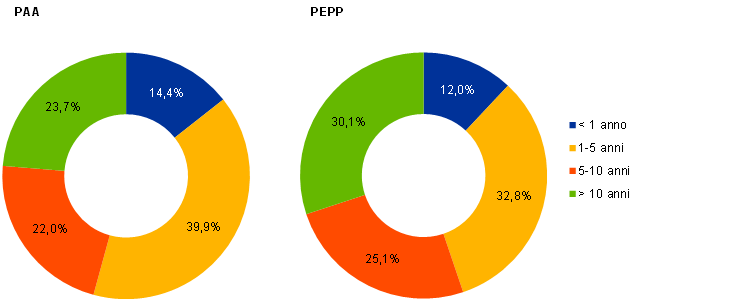 Per i programmi attivi, ovvero il PAA e il PEPP, i titoli detenuti dalla BCE per finalità di politica monetaria a fine 2023 presentano un profilo delle scadenze diversificato[10] (grafico 3).