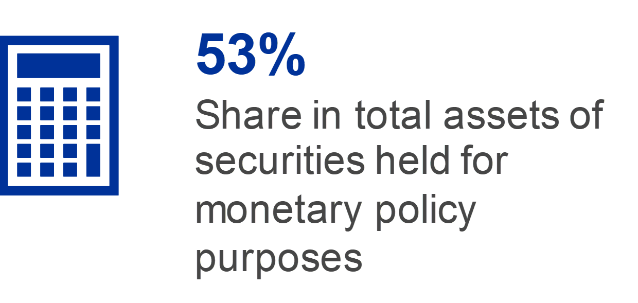 Euro-denominated securities held for monetary policy purposes (asset item 7.1) constituted 52.9% of the Eurosystem’s total assets as at the end of 2020. Under this balance sheet item the Eurosystem holds securities acquired under the APP, the PEPP and the terminated purchase programmes, i.e. the Securities Markets Programme (SMP) and the first two covered bond purchase programmes (CBPP1 and CBPP2).