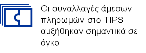 Το 2022 συνεχίσαμε τις προσπάθειές μας να παραμένουμε στην πρώτη γραμμή των τεχνολογικών εξελίξεων στα συστήματα πληρωμών και τις υποδομές της αγοράς. Πραγματοποιήσαμε προπαρασκευαστικές εργασίες για τη μετάβαση από το TARGET2 σε ένα νέο, εκσυγχρονισμένο σύστημα διακανονισμού σε συνεχή χρόνο και επίσης λάβαμε σειρά μέτρων με σκοπό να διασφαλίσουμε πανευρωπαϊκή προσβασιμότητα της υπηρεσίας TIPS του TARGET (TARGET Instant Payment Settlement – TIPS) για όλους τους παρόχους υπηρεσιών πληρωμών. Το 2022 οι συναλλαγές άμεσων πληρωμών μέσω του TIPS ήταν 17πλάσιες σε σύγκριση με το 2021.