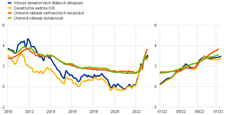 Rok 2022 bol rokom obratu v menovej politike ECB. Výhľad vývoja inflácie sa náhle zmenil, keď ekonomiku naraz zasiahli dva druhy šokov. Po prvé, eurozóna prešla sériou bezprecedentných nepriaznivých ponukových šokov v dôsledku výpadkov v dodávateľských reťazcoch spôsobených pandémiou, neoprávnenej invázie Ruska na Ukrajinu a následnej energetickej krízy. Výsledkom bol výrazný nárast vstupných nákladov vo všetkých sektoroch hospodárstva. Po druhé, prejavil sa pozitívny dopytový šok spôsobený znovuotvorením ekonomiky po pandémii. Ten umožnil podnikom preniesť rast nákladov do cien oveľa rýchlejšie a výraznejšie ako v minulosti.