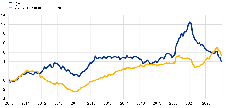 Obchodná bilancia tovarov v eurozóne sa v roku 2022 dostala do deficitu, najmä v dôsledku vyšších nákladov na dovoz energií a utlmenej výkonnosti vývozu. Mohutný rast na strane dovozu, podporovaný kumulovaním energetických zásob a narastajúcim dovozom medziproduktov, bol sprevádzaný prudkým zvýšením cien, najmä v prípade dovozu energií. Opätovné zintenzívnenie obmedzení v dodávateľských reťazcoch v prvej polovici roka 2022 bránilo vývozu tovarov. Následne pokračoval jeho útlm v dôsledku oslabenia globálneho dopytu, zatiaľ čo problémy s dodávateľskými reťazcami sa odstraňovali len postupne. Vývoz služieb, najmä v cestovnom ruchu, naopak ťažil zo zmiernenia a postupného rušenia protipandemických obmedzení. Príspevok obchodu k rastu HDP v eurozóne bol v roku 2022 celkovo neutrálny.