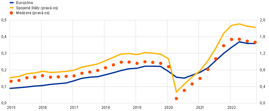 Zdroj: Makroekonomické projekcie odborníkov Eurosystému pre eurozónu, december 2022, a výpočty ECB.