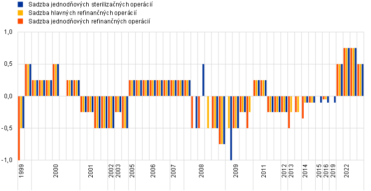 Už na konci roka 2021 sme oznámili, že čistý nákup aktív v rámci programu nákupu aktív (asset purchase programme – APP) postupne znížime a nákup aktív v rámci núdzového pandemického programu nákupu aktív (pandemic emergency purchase programme – PEPP) ukončíme na konci marca 2022. Celkové nastavenie našej menovej politiky však bolo stále výrazne akomodačné – prispôsobené prostrediu veľmi nízkej inflácie za posledných desať rokov a deflačných rizík na začiatku pandémie. Prijali sme preto sériu krokov v záujme normalizácie nastavenia menovej politiky a rýchlej reakcie na zhoršujúci sa výhľad vývoja inflácie.