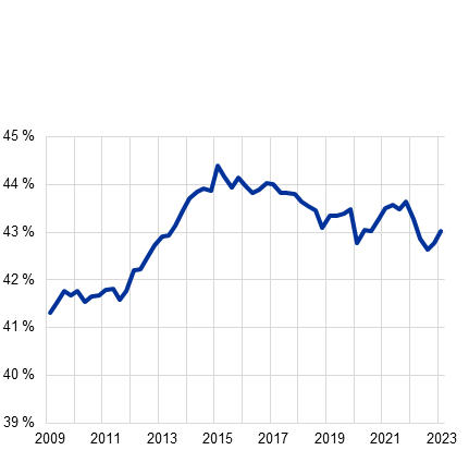 2023 m. ECB dar 200 bazinių punktų pakėlė pagrindines palūkanų normas, o indėlių galimybės palūkanų norma padidėjo iki 4 %. Pinigų politikos sugriežtinimas stipriai persidavė ekonomikai. | Trečiąjį ketvirtį euro zonos bankų bendro 1 lygio nuosavo kapitalo pakankamumo koeficientas buvo 15,6 %. Jis buvo artimas aukščiausiam lygiui nuo Europos bankų priežiūros pradžios ir rodė didesnį bankų portfelių pelningumą bei rizikos mažinimą. |