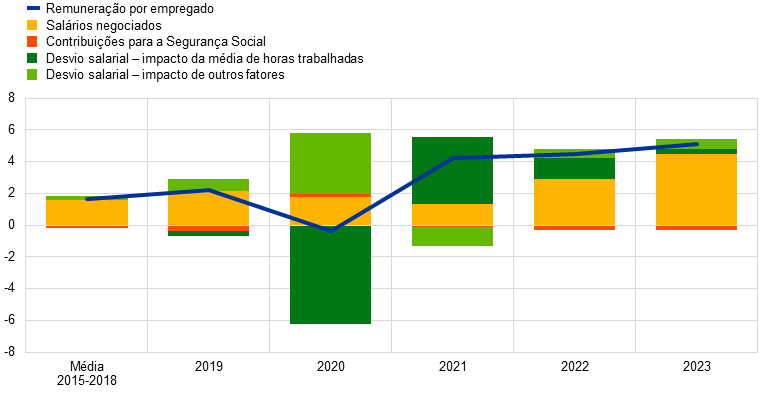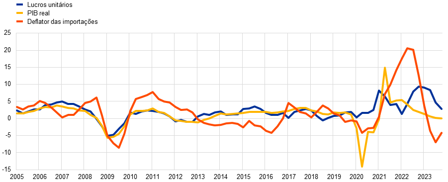 Ver Arce, O., Hahn, E. e Koester, G., How tit‑for‑tat inflation can make everyone poorer, Blogue do BCE, 30 de março de 2023, e a caixa intitulada Como é que os lucros unitários contribuíram para a recente intensificação das pressões internas sobre os preços na área do euro?, Boletim Económico, Número 4, BCE, 2023.