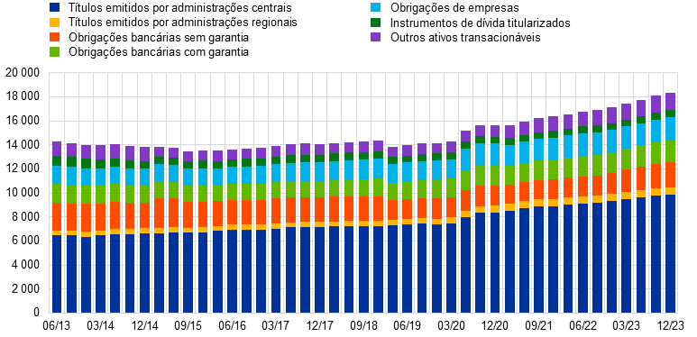 O BCE subiu as taxas de juro diretoras em mais 200 pontos base durante 2023, elevando a taxa da facilidade permanente de depósito para 4%. O aumento da restritividade da política monetária foi transmitido de forma vigorosa à economia. | O rácio de fundos próprios principais de nível 1 (Common Equity Tier 1 – CET1) dos bancos da área do euro situou‑se em 15,6% no terceiro trimestre, próximo do nível mais elevado registado desde o início da supervisão bancária europeia, refletindo a maior rentabilidade e a redução dos riscos das carteiras dos bancos. |