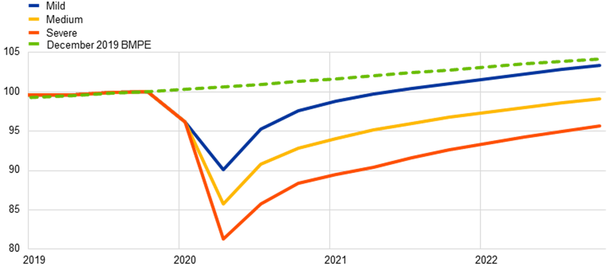 2. [2]See Battistini, N. and Stoevsky, G. (2020), “Alternative scenarios for the impact of the COVID-19 pandemic on economic activity in the euro area”, Economic Bulletin, Issue 3, European Central Bank.