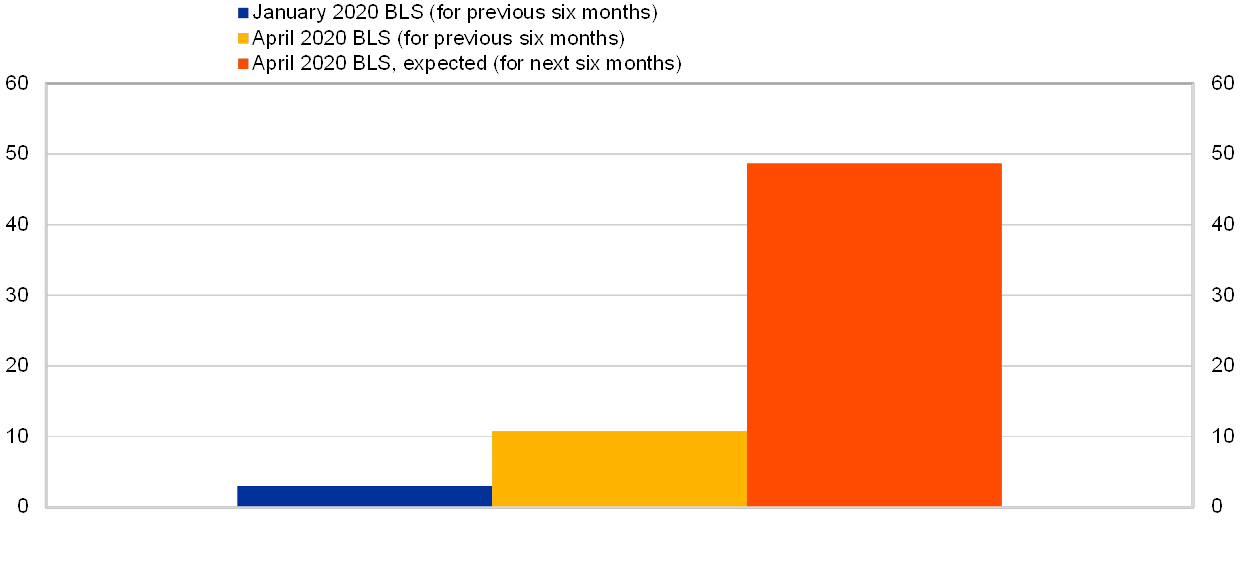 Incoming information suggests that TLTRO III is supporting credit provision. According to the Bank Lending Survey (BLS) published earlier this week, banks are largely using TLTRO III liquidity to grant loans to the non-financial private sector. Moreover, banks have indicated that TLTRO III is having a net easing impact on the terms and conditions offered to borrowers and a positive net impact on their lending volumes, particularly on their expected lending volumes over the next six months (Chart 2). On balance, the very mild tightening of credit standards for firms (up to now) shown in the BLS is significantly less pronounced compared to the credit squeeze that amplified the financial and sovereign debt crises between 2008 and 2012. This is a sign that our measures (together with the contribution from the announcement of public credit guarantees in many countries and other direct and indirect support for firms and households) are protecting bank-based credit flows.
