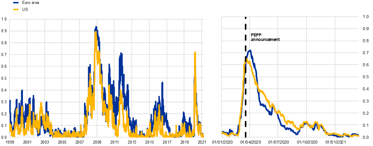 Composite indicator of systemic stress for the euro area and the United States