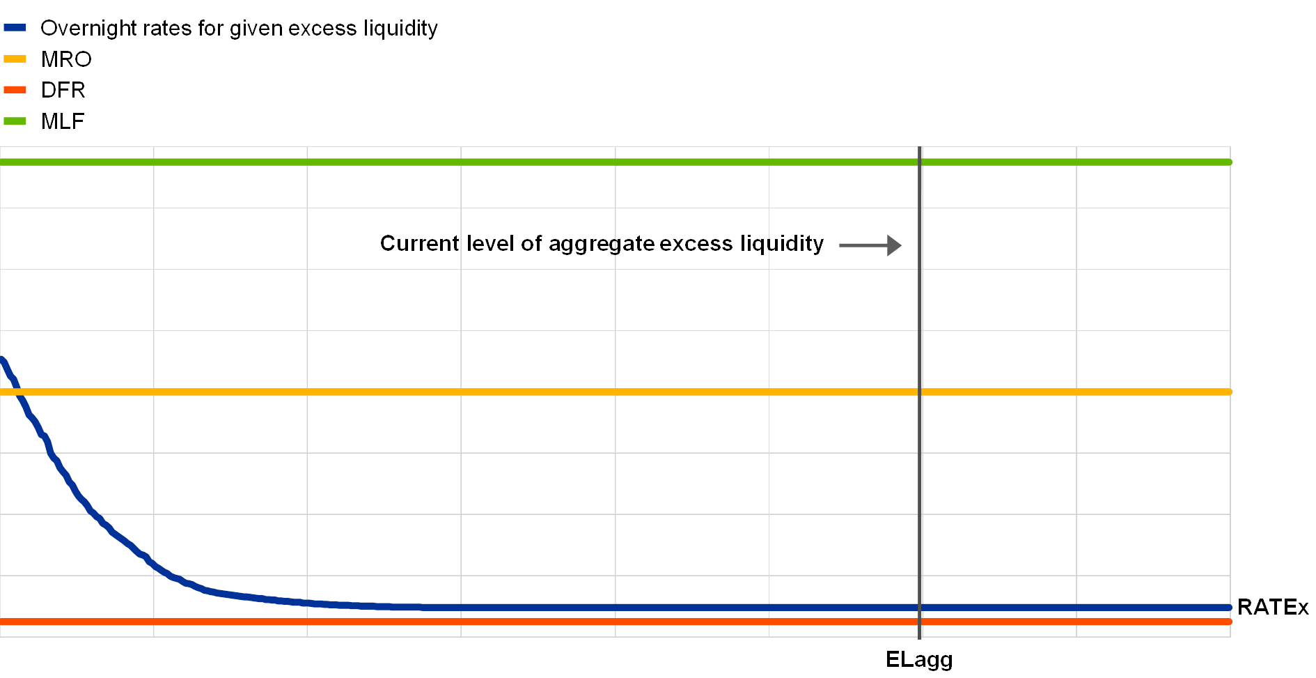 Stylised relationship between aggregate excess liquidity and the unsecured overnight interbank rate in the euro area