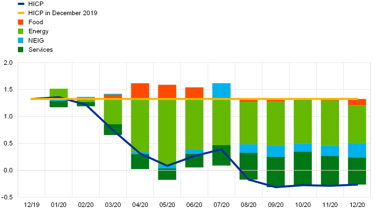 Note: The bars show contributions of components to the change in annual HICP since December 2019.