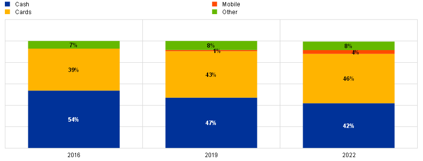 8. See “Study on the payments attitudes of consumers in the euro area (SPACE)”, ECB, December 2022.