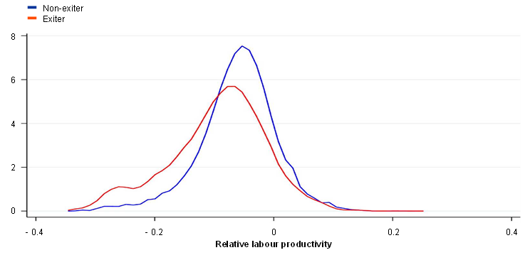 Distribution of productivity of firms that exited compared with survivors in the same sector in 2020