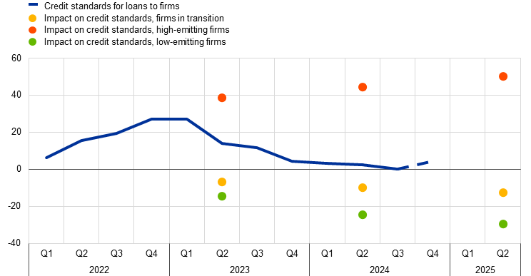 Changes in banks’ credit standards for firms and impact of climate change on bank lending conditions and loan demand