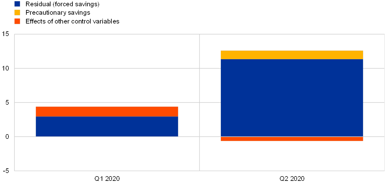 Note: The change in the saving rate in the first quarter of 2020 is based on official statistics, while the change in the second quarter of 2020 is an internal estimate.