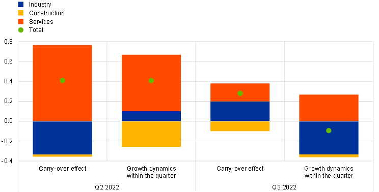 Estimated sectoral contributions to carry-over effects and intra-quarter growth dynamics in the second and third quarters of 2022