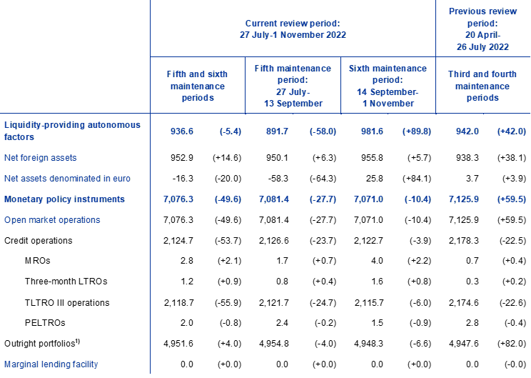 Liquidity conditions and monetary policy operations from 27 July to 1 November 2022