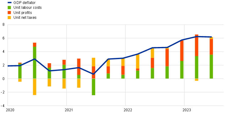 23. See Lagarde, C., “Breaking the persistence of inflation”, speech at the ECB Forum on Central Banking 2023 on “Macroeconomic stabilisation in a volatile inflation environment” in Sintra, Portugal, 27 June 2023; Bernanke, B. and Blanchard, C., “What Caused the U.S. Pandemic-Era Inflation?”, paper prepared for the “The Fed: Lessons learned from the past three years” conference at the Hutchins Center on Fiscal & Monetary Policy at the Hutchins Institution, 23 May 2023; Hansen, N.-J., Toscani, F. and Zhou, J., “Europe’s Inflation Outlook Depends on How Corporate Profits Absorb Wage Gains”, IMF Blog, International Monetary Fund, 26 June 2023.