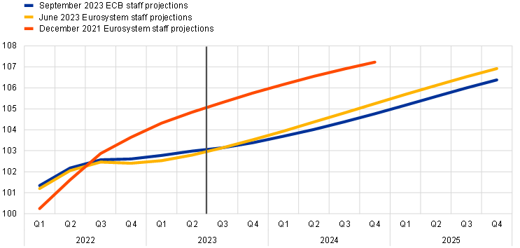 Sources: ECB calculations and ECB staff macroeconomic projections for the euro area, September 2023.